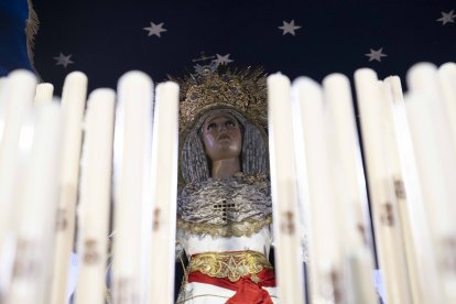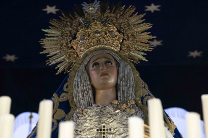 La Virgen del Primer Dolor, saliendo de San Sebastián.