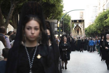 La Real e Ilustre Hermandad del Santo Sepulcro y Nuestra Señora de los Dolores realiza su Estación de Penitencia este Viernes Santo.