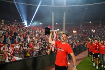 Tras recorrer Almería en un autobús descapotable, la UD Almería celebra con su afición el ascenso a Primera División.