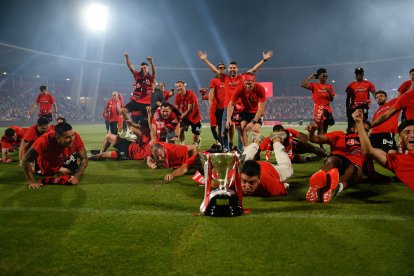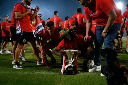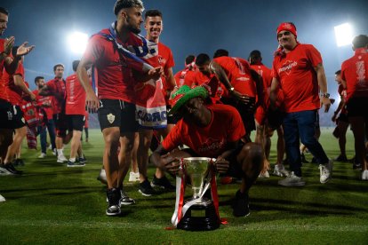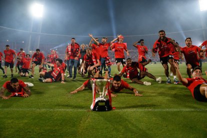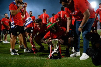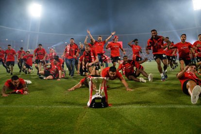 Fiesta en el campo del Almería para celebrar el ascenso
