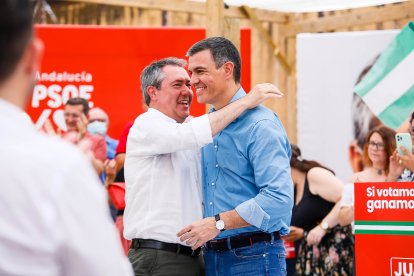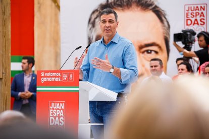 El secretario general del PSOE y presidente del Gobierno, Pedro Sánchez, interviene junto al candidato socialista a la presidencia de la Junta de Andalucía, Juan Espadas, en Cuevas del Almanzora, Almería.