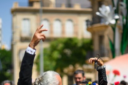 Antonio y Mari, que muestra su precioso abanico de la Feria de Almería 2022.