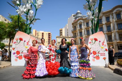 Rosa, Lola, Luisa, Mari, Verónica, Luisa y Patricia, las más flamencas de la tarde en el ambigú de LA VOZ y Cadena SER.
