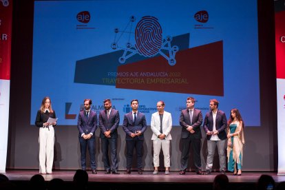 La Asociación de Jóvenes Empresarios de Andalucía hizo entrega en la noche del jueves de los Premios AJE Andalucía 2022 en las modalidades de Iniciativa Emprendedora y Trayectoria Empresarial. Una gala que congregó a más de 300 asistentes en el Teatro Cervantes de Almería.