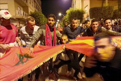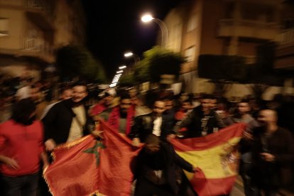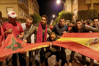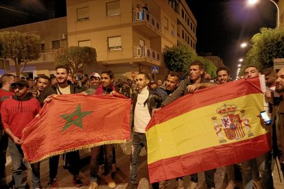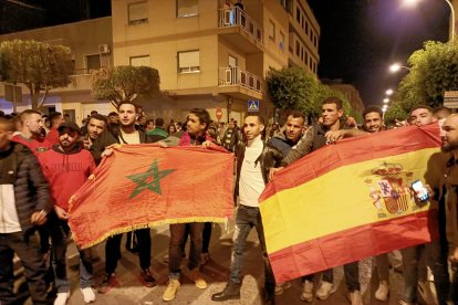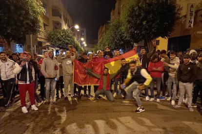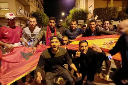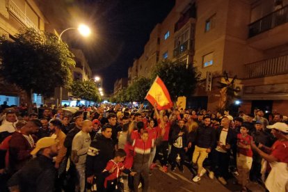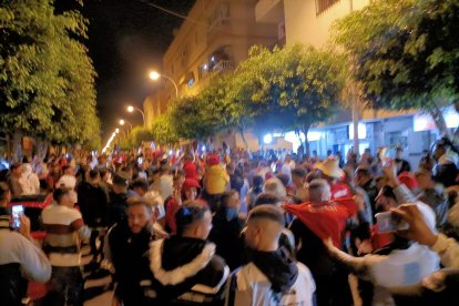 Nada más acabar el encuentro, la comunidad marroquí en Almería ha saltado a las calles a festejar la victoria.