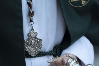 Carmen Villanueva, camarera mayor, entregando flores a las Puras.