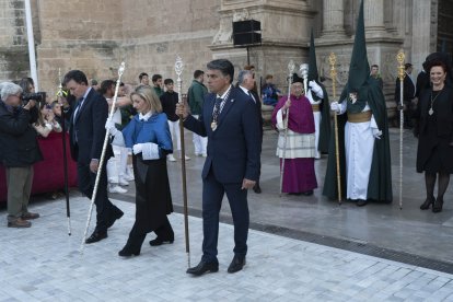 En imágenes, los mejores momentos de la salida de la cofradía de los Estudiantes desde la Catedral cuatro años después de su última procesión, en la Semana Santa de 2019.