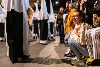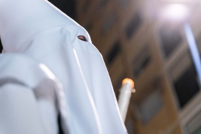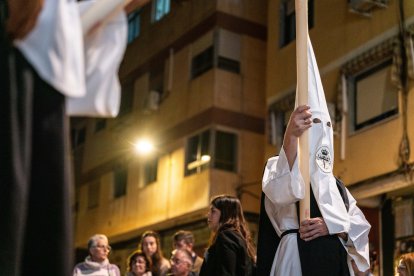 Nazarenos del Silencio a su paso por la Casa de las Mariposas.