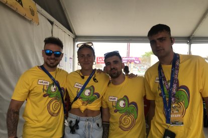 Los asistentes al Solazo Fest ataviados con brillos, coloridos sombreros y gafas de sol a juego pasearon por el recinto del festival disfrutando de cerveza y decenas de opciones gastronómicas entre las que se incluyen crepes o patatas, entre otras. Asimismo, en la zona de paella los cocineros preparaban a fuego lento dos grandes paelleras cuyo olor llegaba a los que entraban en el recinto, que eran recibidos con un enorme photocall.