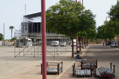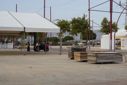 Montaje de las casetas en el recinto ferial de la Vega de Acá