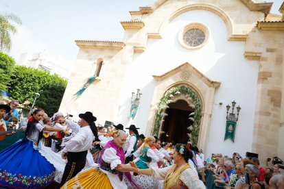 Cumpliendo con la tradición, pero con algunos cambios. Almería se ha reunido a las puertas del Santuario de la Virgen del Mar en la festividad de la patrona de la ciudad para felicitarla con flores. Nardos, bailes y mucho calor en este sábado previo al último domingo de agosto en el que no ha faltado nadie: el Ayuntamiento al completo (con una amplia mayoría de concejales con el traje típico almeriense), la Diputación provincial, la Junta de Andalucía representada con los dos consejeros almerienses, asociaciones, la Policía Nacional, la Guardia Civil, el espectacular momento protagonizado por los bomberos de Almería, hermandades, caballistas... Almería ha felicitado a su patrona en este último día de Feria que encara, ya para este domingo, la procesión que pondrá punto final a todo.