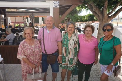 Fran, Rocío, Paqui y Mari Ángeles disfrutando de unas buenas tapas de migas y magra en la feria.