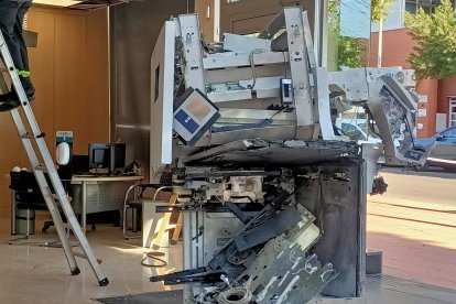 Estado del cajero tras la explosión de esta madrugada.