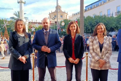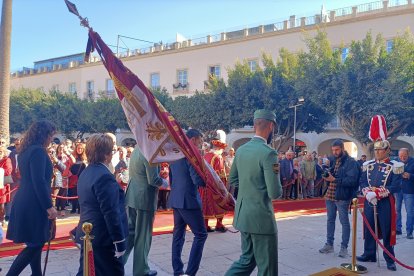 La alcaldesa de Almería, María del Mar Vázquez, tremolando el Pendón