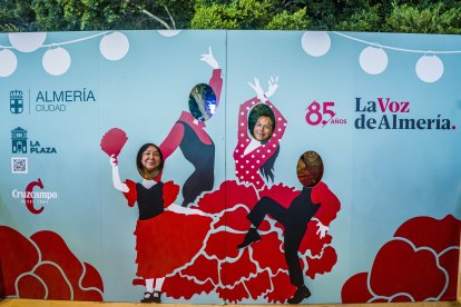 Así posan los almerienses en el photocall de La Voz de Almería, Siente La Plaza, Ayuntamiento de Almería y Cruzcampo.
