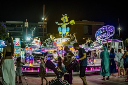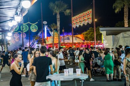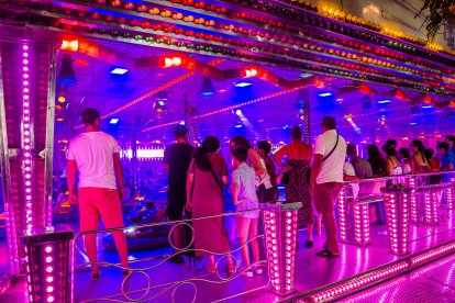 Una familia disfruta de la noche del miércoles en el Recinto Ferial.