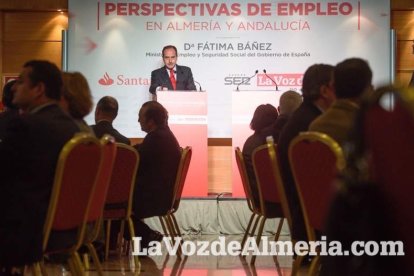 Desayuno de La Voz de Almería, patrocinado por Banco Santander, con la presencia de la ministra de Empleo y Seguridad Social, Fátima Báñez. Fotos: Juan Sánchez y JA Barrios.