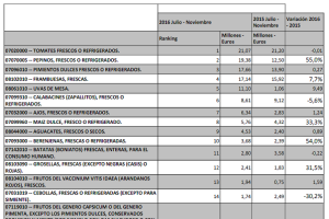 Ranking de frutas y hortalizas exportadas a Reino Unido