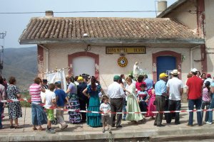 La Virgen de Fátima es llevada en Romería a la estación para que vea pasar el tren