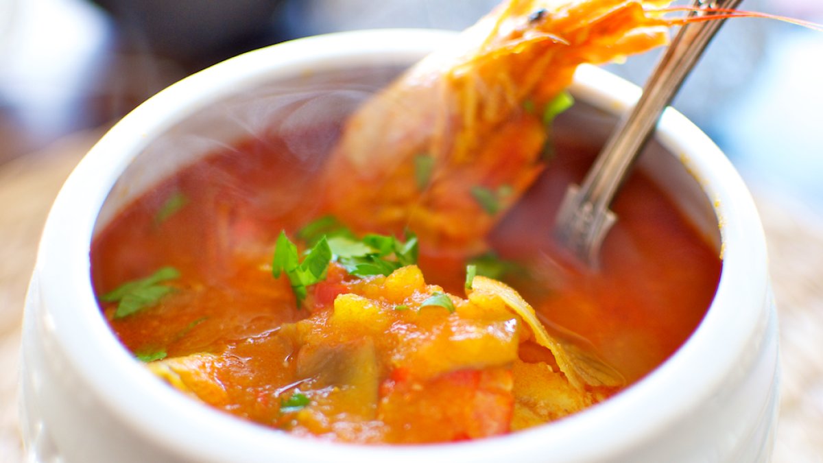 Sopa de fideos con merluza.