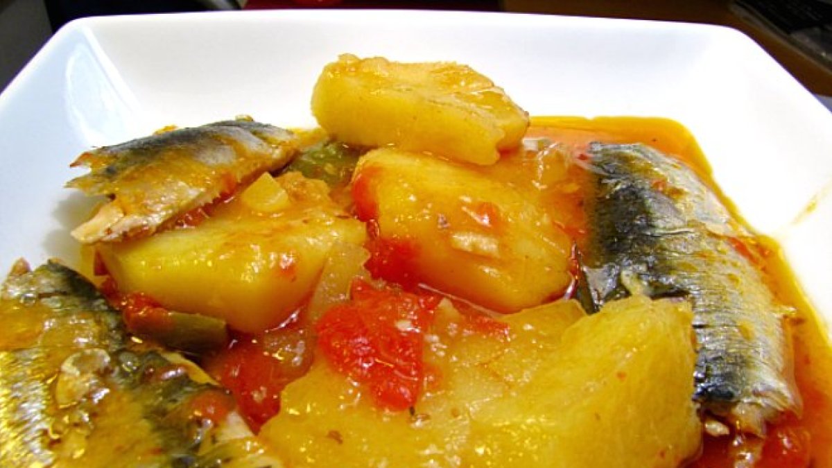 En el almirez se machacan bastantes ajos con sal y con cominos. Se fríen 2 ó 3 pimientos secos sin que se quemen (con el aceite caliente pero la sartén apartada del fuego) y se apartan. Se trocean unos pimientos verdes, una cebolla (todo menudito) y se fríen en el aceite de los pimientos secos, seañade después bastante tomate y cuando todo esté frito se añade el majao de ajos y cominos hasta que se huela el comino. Se añade el pimiento seco también machacado y una cucharada de pimentón dulce, se rehoga todo un instante, se añade una rama de perejil y azafrán, agua suficiente y unos pimientos asados. Cuando arranque a hervir añadimos el pescado crudo: dos jureles, una caballa y unos pocos boquerones por ejemplo y se deja hervir un poco pero no demasiado. Se sirve con gachas que se hacen de la siguiente manera: Se pone agua a hervir en una paila con sal y un puñado de harina de maíz, cuando este hirviendo se va agregando la harina de maís poco a poco y sin parar de mover hasta que esté cocida, si le falta agua se le puede añadir pero siempre caliente. Esta masa cuando está cocida y en caliente, se extiende sobre los bordes de un plato hondo y se sirve el caldo anterior por encima.