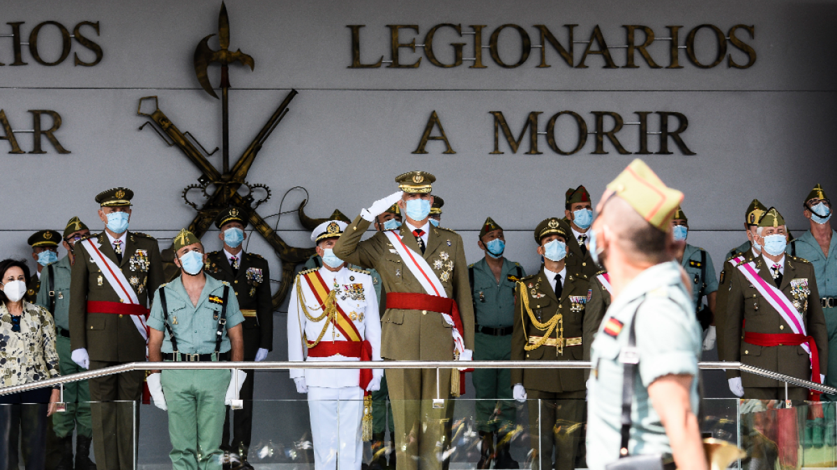Entrada de la bandera nacional, llegada del Rey, revista a las tropas, lectura de una reseña histórica de la unidad, homenaje a los caídos y desfile de legionarios y vehículos. Apenas una hora de evento. Todo con escrupuloso respeto a las medidas sanitarias y cierta sensación de desazón en el ambiente por no poder hacer partícipes a los ciudadanos de un encuentro llamado a ser multitudinario, una gran fiesta popular.