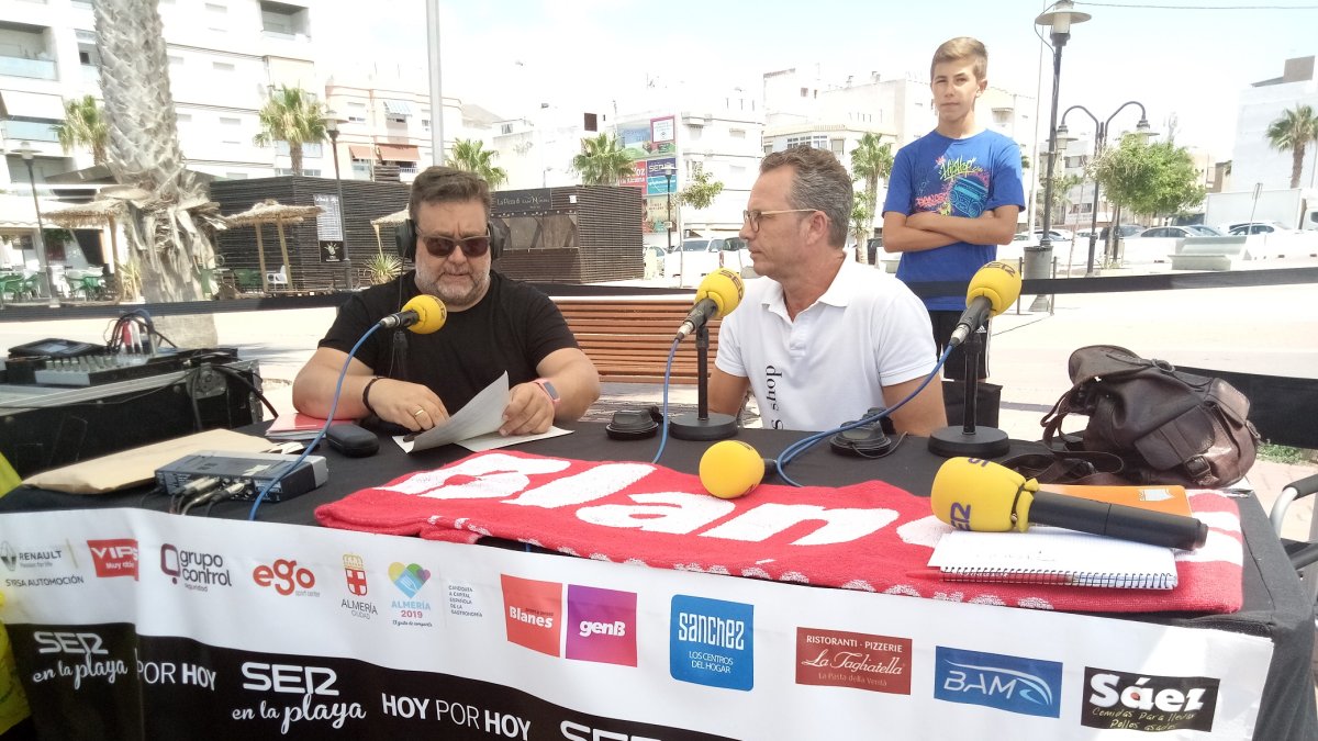 El equipo de ‘Hoy por Hoy’ de la Cadena SER Almería comenzó la semana retransmitiendo el programa desde la playa de San Nicolás, en Adra, en un día lleno de sol, buen tiempo y unas aguas cristalinas que escondían alguna que otra medusa. Pero estos animales no impidieron que las personas que se encontraban disfrutando de un día de playa dejaran de bañarse. Es más, Alfredo Casas aprovechó la caza de medusas que algunas de estas personas estaban haciendo para regalar las toallas de Deportes Blanes a las tres primeras que se acercaran al set demostrando que habían atrapado una.