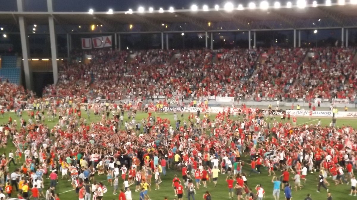 Y llegaron los Juegos del Mediterráneo de 2005 a Almería y con ellas un nuevo Estadio, al que se dio el nombre del evento. El campo de fútbol se inauguró el 31 de Agosto de 2004 con una capacidad de 15.200 espectadores. En él logró la UD Almería dos ascensos a 1ª división. Y aquí sigue jugando 110 años después de llegar el fútbol a Almería. Modestamente hemos intentado recordar sus luces y sombras en esta sección.