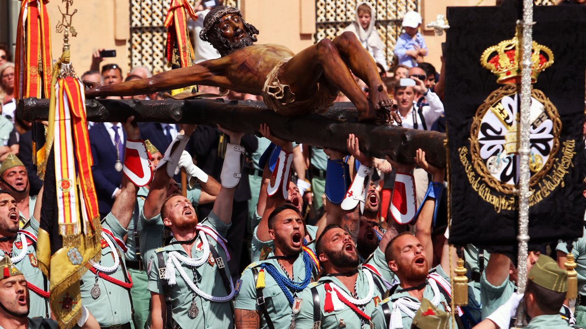 Emociona ver a estos legionarios, con sus uniformes ajustados, desfilando