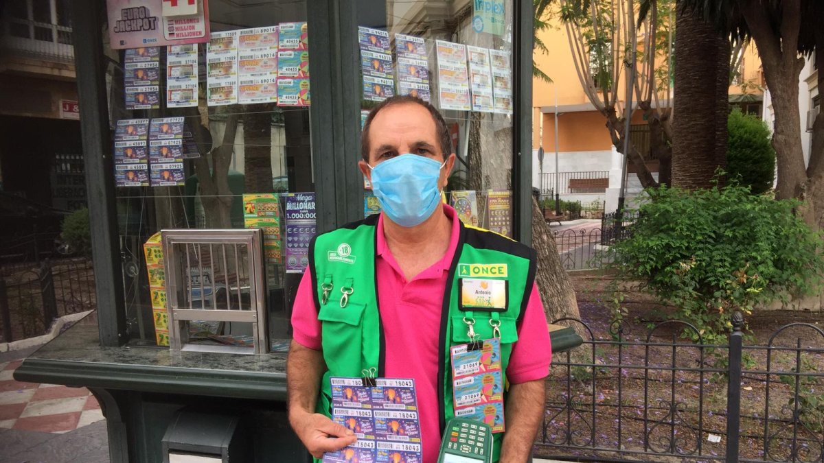 Este gran premio de la ONCE ha ido a parar hasta Huércal-Overa. Allí, Antonio Sánchez López, afiliado a la ONCE y vendedor desde hace 35 años, tiene su punto de venta ubicado en un kiosco de la plaza de la Legión, al lado del ayuntamiento, en pleno centro de esta localidad, donde ha repartido en total 1.775.000 euros, incluida esta primera 'paga' de la ONCE tras el parón de tres meses en las ventas provocado por la pandemia del Covid-19.