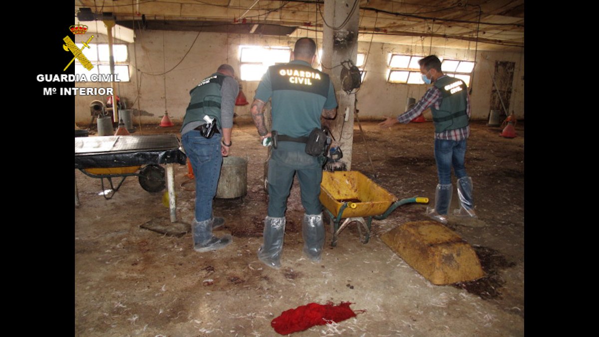 En una reciente operación, desarrollada por la Guardia Civil de Almería, se investiga a una persona como responsable de una explotación avícola que carece de autorización sanitaría y administrativa para desarrollar la actividad de matadero de aves, por delitos Contra la Salud pública y Contra los derechos de los Trabajadores en Zurgena (Almería).