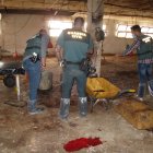 Durante la inspección, los agentes comprueba que en el interior de la explotación existen 200 pollos (broilers) en aparente buen estado, pero que tanto el interior de las naves como el exterior se encuentran en pésimas condiciones higiénicas. De igual manera se localiza un matadero de aves con su correspondiente equipo de sacrificio y faenado (en condiciones higiénicas deficientes) y restos de plumas y vísceras, una desplumadura, una caldera y un quemador de gas, además también se localizan bolsas de envasado y 13 pollos envasados y preparados para su comercialización.