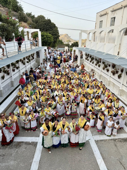 El pueblo de Mojácar encara las últimas horas de sus fiestas patronales en honor a San Agustín. Días grandes para esta turística localidad que han transcurrido entre tradiciones y brindis desde el primer día, en el que tuvo lugar el pregón por parte del reconocido escritor Jorge Díaz (miembro de Carmen Mola) tras la espectacular ‘Subida del agua’ y ofrenda floral con cientos de personas, numerosas ataviadas con las vestimenta clásica de mojaquera. Después, llegó la esperada elección de la reina y los reencuentros infinitos en la verbena.