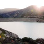 El embalse del Negratín presenta un color más turbio al estar recibiendo bastante agua. Abajo se ve la estación de bombeo al Almanzora.