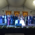 Miembros de las cofradías, pregoneras este año, con la alcaldesa y autoridades municipales y las reinas.