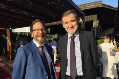 Gabriel Amat, alcalde de Roquetas de Mar, charla animadamente con Manuel León, jefe de redacción de La Voz de Almería.
