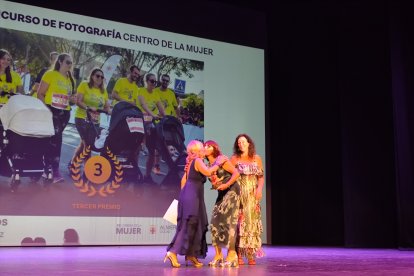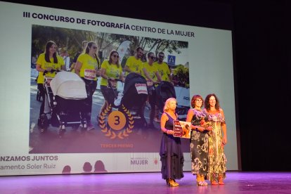 Paola Laynez, concejala de Familia, Igualdad y Participación Ciudadana, y la alcaldesa María del Mar Vázquez hacen entrega del premio a la tercera ganadora del concurso de fotografía..