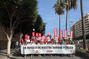 La marcha, convocada por CCOO, UGT y la Marea Blanca, ha reunido a colectivos ciudadanos y profesionales sanitarios en defensa de un sistema público de salud de calidad