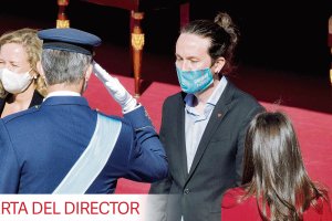 Una foto del homenaje a las víctimas del covid acompaña al monarca