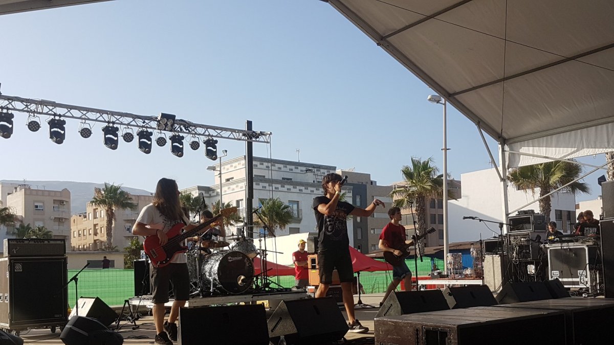 La sexta edición de The Juergas Rock Festival es ya una realidad. Con los primeros acordes y bases de Frida, con su rap emergente lleno de matices de otros géneros, arrancaba con el mes de agosto, este miércoles, las doce horas de música en directo que han llenado el escenario Ac(G)ustico del Paseo Marítimo de Adra. Una fiesta de bienvenida la jornada antes del inicio del cartel ‘de abono’ y que se ha convertido ya en una tradición no escrita que cada año congrega a más y más gente. Tal es así que durante los conciertos de los nueve grupos de hoy han pasado por el Paseo Marítimo más de 6.000 personas.