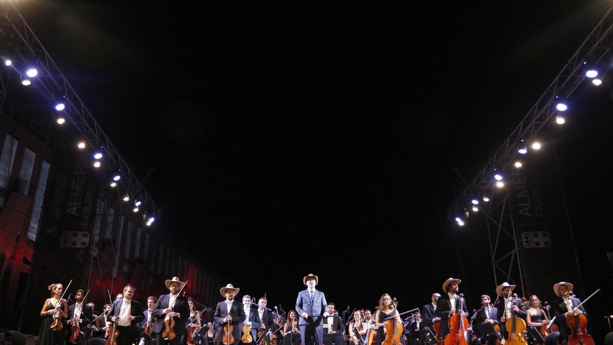 El camino al Nuevo Mundo, el camino que recorrió Estados Unidos hasta encontrar una música con la que sentirse identificado, fue el que trazó la Orquesta Ciudad de Almería (OCAL) este jueves en el Parque de las Almadrabillas, junto al Cable Inglés, en su concierto de Feria, Viaje al Wild West, con los actores y bailarines del Oasys MiniHollywood como genuinos figurantes. De la Suite Billy el Niño a Hoe Down, ambas de Copland. De los sonidos de los pueblos indígenas a las bandas sonoras de los westerns, muchos rodados en esta tierra.