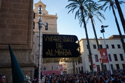 "Sin Esperanza no se puede vivir". Con esas palabras se dirigía el obispo de Almería, Antonio Gómez Cantero, a la cuadrilla de María Santísima del Amor y la Esperanza cuando acababa de salir de la Catedral. Una de las devociones por excelencia de Almería regresaba a la calle, puntual, un Miércoles Santo más y lo hacía de una forma titánica a la vez que elegante. Excelentemente vestida por José Siles, estrenando acompañamiento musical con la Banda Municipal de Albox y con un exorno floral único en la ciudad (los esquineros diseñados por Gracia y la Penca son característicos e inconfundibles), la Esperanza de los Estudiantes se ha reencontrado con Almería.