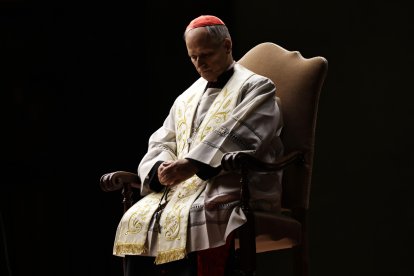 Robert Francis Prevost, el nuevo Papa, rezando un rosario por la salud del fallecido Papa Francisco el pasado marzo.